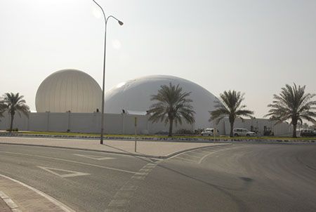Ci-contre, dôme de 200' Ø (61 m) réalisé en 2009. Il était destiné au "party" des femmes à l'occasion du mariage du prince, au Qatar.