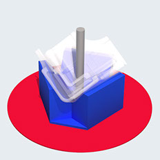 • Pour le positionnement de pièces sur 3 axes, on peut utiliser une matrice pour y encastrer la pièce à travailler. Dans l'exemple B, il y a une série de matrices interchangeables qui s'installent sur un réceptacle fixe.