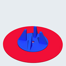 Il y a d'abord un dispositif qui se fixe au plateau de la perceuse par le centre et de chaque côté. Il sert de réceptacle pour une série de disques interchangeables dont chacun comporte une matrice pour déterminer les positions relatives des pièces à percer.